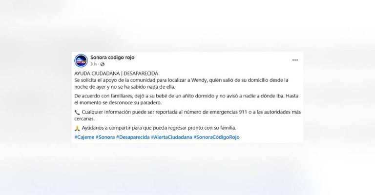 En el reporte que comenzó a circular en redes sociales no se especificó en qué colonia fue vista por última vez, ni tampoco se compartieron rasgos particulares o datos importantes sobre ella que puedan facilitar su localización. Sin embargo, según el testimonio de sus familiares, Wendy dejó a su bebé de un año dormido en casa antes de salir y no informó a nadie a dónde se dirigía. Por el momento, ninguna autoridad se ha pronunciado al respecto.