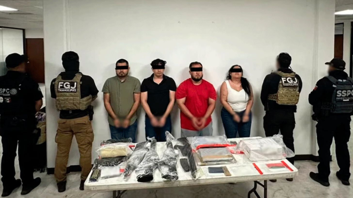 Matamoros, Tamaulipas.- La Secretaría de Seguridad y Protección Ciudadana (SSPC) confirmó la detención de cuatro presuntos integrantes de una célula del Cártel del Golfo. De acuerdo con información extraoficial, se dedicaban al tráfico de armas, narcóticos y al lavado de dinero. Los detenidos fueron identificados como Juana María, alias La Conta; Guillermo Gamaliel; Aldri Jhair y Alán Alexis.