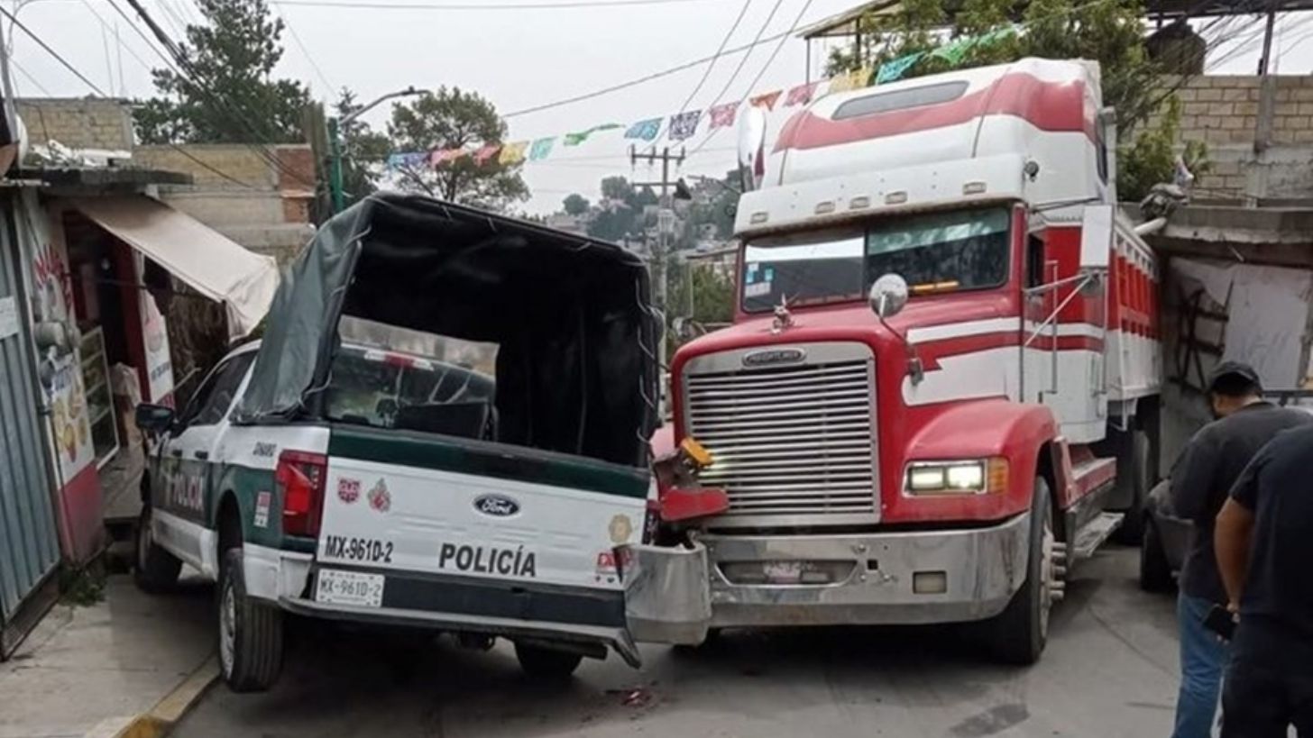 Ciudad de México.- Un tractocamión se impactó contra una vivienda luego de fallarle los frenos, a su paso embistió una patrulla y un automóvil particular al perder el control el chofer de la unidad, los hechos sucedieron la mañana del jueves al sur de la Ciudad de México en la alcaldía Magdalena Contreras cuando elementos de la Secretaría de Seguridad Ciudadana (SSC), realizaban labores de vigilancia en la avenida Coconetla de la colonia El Ocotal