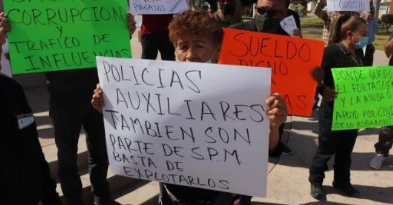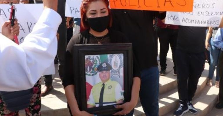 Ciudad Obregón, Sonora.- Niños, niñas, elementos de la corporación y viudas de policías que perdieron la vida a manos de la delincuencia se presentaron con pancartas frente al Ayuntamiento y posteriormente en la comandancia de seguridad, exigiendo la renuncia de Sergio Pablo Mariscal, así como tener un sueldo digno, servicios médicos y transparencia en el manejo de los recursos del Programa de Fortalecimiento para la Seguridad (Fortaseg).