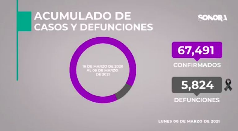 Finalmente, la Secretaria de Salud informó que desde el comienzo de la pandemia y hasta este momento, los casos confirmados hasta este momento suman 67 mil 491 sonorenses que han contraído la enfermedad.