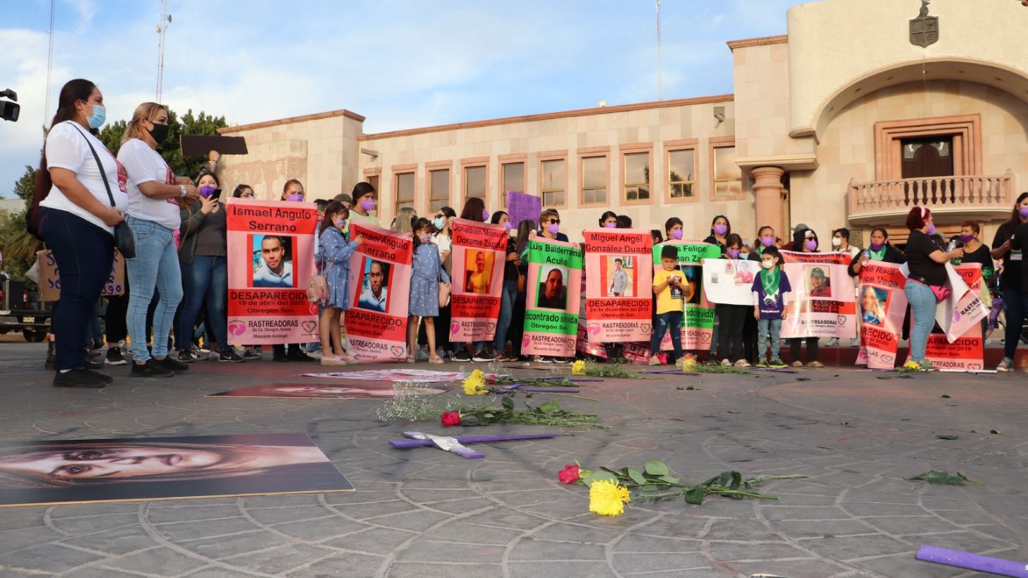 El blanco para las que esperan encontrar con vida. Eran más de 200 papeles, todas ellas de Cajeme. Antes de culminar se pasó lista, “no debió morir” o “exigimos su cuerpo con vida”, eran los reclamos y pese a que los policías trataron de quitar su protesta pacífica no se detuvieron. Nora Lira, líder de las Rastreadoras de Cajeme, leyó un artículo para honrar la memoria de su hija Fernanda, quien en 2018 no regresó a casa y a finales de 2020 fue encontrada en una fosa clandestina.