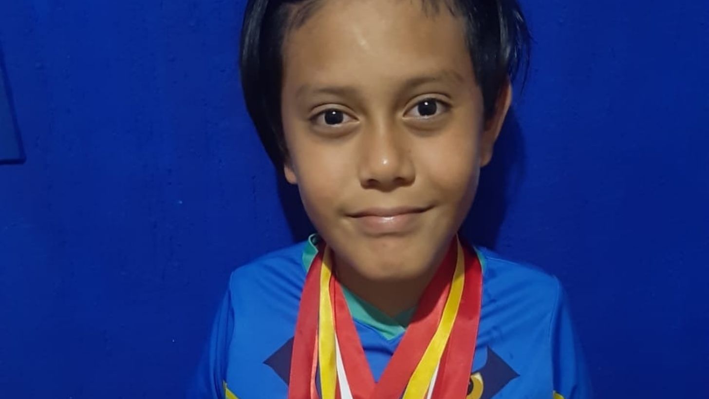 ‘La Pulga’, como es conocido por sus amistades y familiares, es hijo de la señora Melissa Ramírez Jiménez y Juan Antonio Esmeralda Casanova, tiene 10 años y desde que tenía 6 comenzó a destacarse en la cancha, logrando en su corta trayectoria varios primeros lugares.