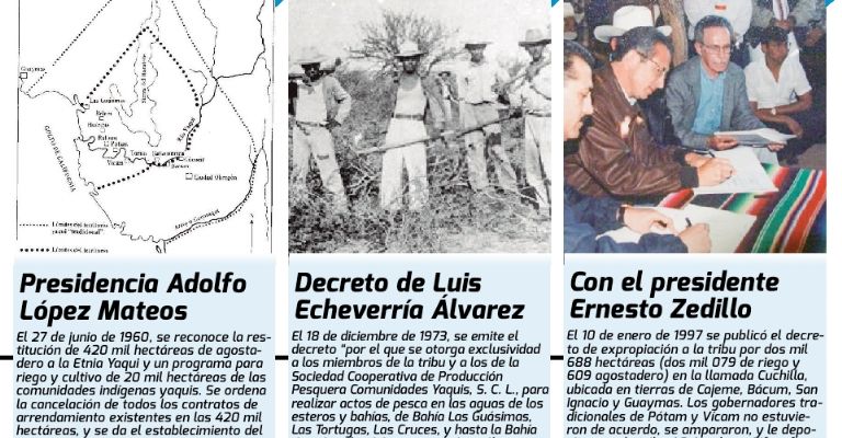 Ahora pues el señor presidente está trabajando en ello y nosotros estamos informándole donde está y por donde va el territorio original de la tribu. Ya sabemos que es difícil y hay mucho en contra para lograr todo esto", confirmó Juan Luis Matus, capitán de la Guardia Tradicional de la Etnia Yaqui, en la comunidad de Loma de Guamúchil a TRIBUNA. Sobre el terreno de La Matanza comentó que ya existía una lucha de 4 años, "la Tribu Yaqui lo acreditó como miembro (al dueño del terreno)y él le dio la espalda registrando las tierras como suyas, pero no es así su mamá le rentaba las tierras a la tribu".