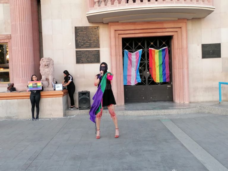 Esta performance se hace para conmemorar este día internacional en contra de la Transfobia, Lesfobia y Homofobia. Queremos recordar que somos seres humanos que existimos y que no tenemos por qué sufrir discriminación", afirmó la cajemense.