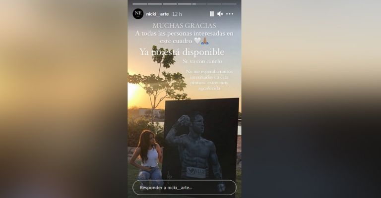 Muchas gracias a todas las personas interesadas en este cuadro, ya no está disponible, se va con Canelo. No me esperaba tantos interesados en esta pintura, estoy muy agradecida”, publicó Nicky.