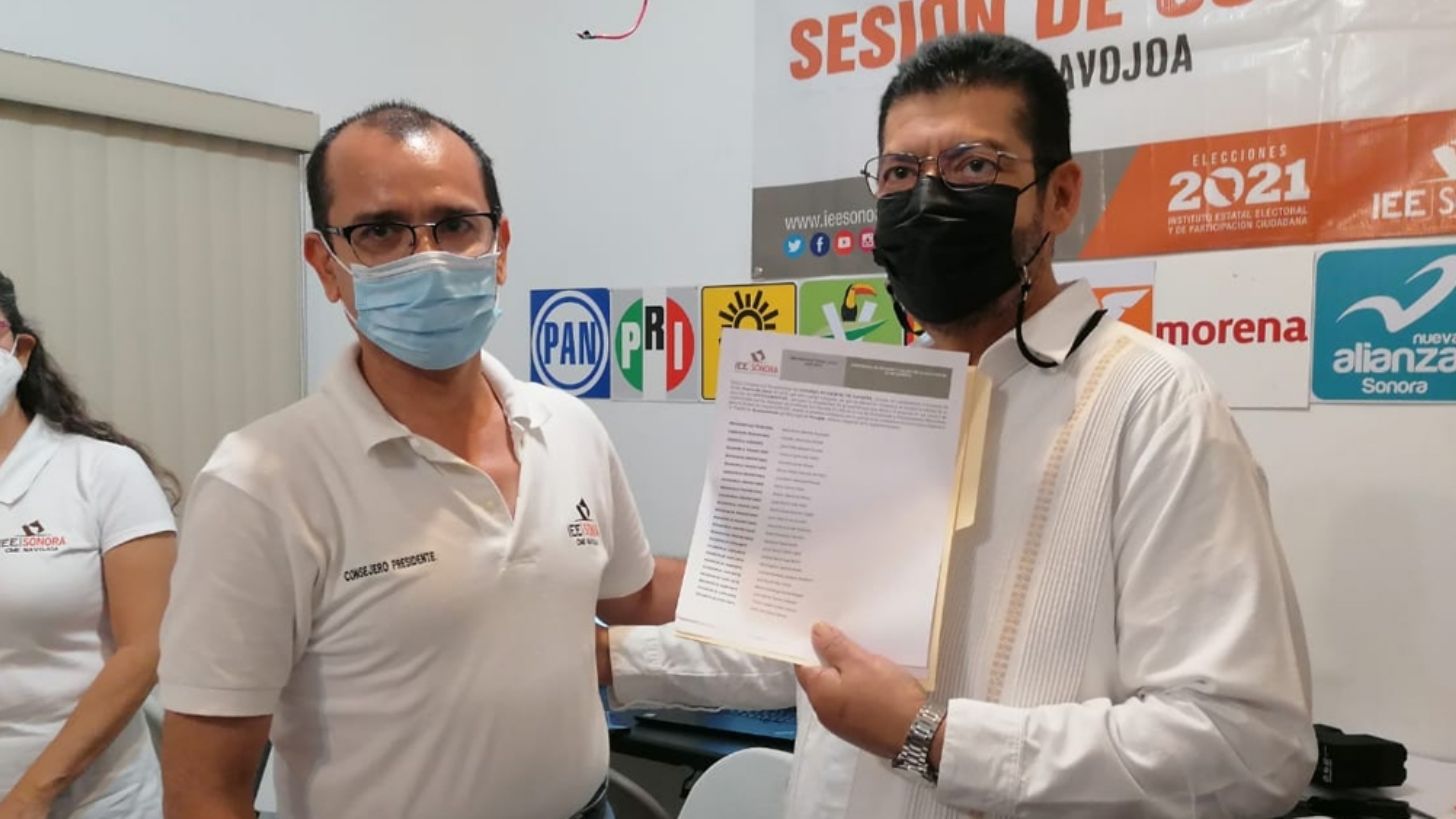 Navojoa, Sonora.- El candidato de Morena a la alcaldía de Navojoa, Mario 'Mayito' Martínez Bojórquez, se convirtió en el presidente municipal electo al recibir este miércoles la constancia de mayoría de votos por parte de la representante del Consejo Municipal del Instituto Estatal Electoral (IEE) en el municipio de Navojoa, Benito Galván Corral.