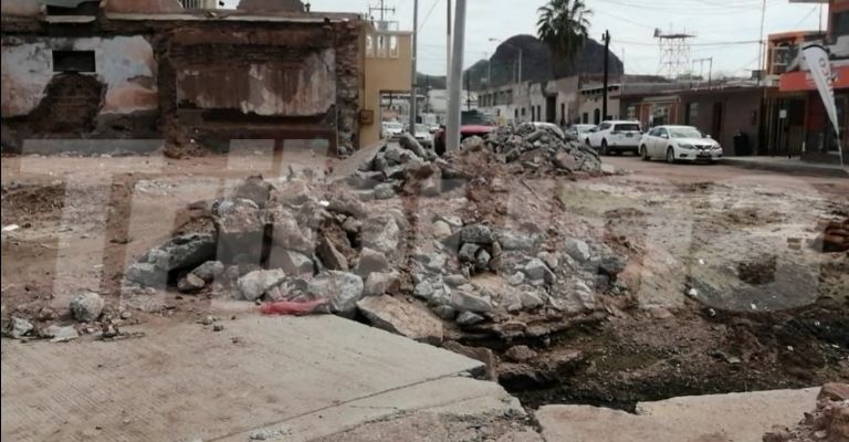 Guaymas, Sonora.- Luego de que el pasado 6 de abril se iniciaran los trabajos de rehabilitación de la avenida 9 y Diagonal Yañez en el Centro de Guaymas, las labores de mantenimiento se han visto 'tibias' entorpeciendo la movilidad peatonal y de automovilistas, generando además un gran foco de infección al mantener expuesto el sistema de drenaje, mismo que afecta directamente a los comerciantes del lugar.