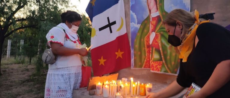 Previo a iniciar la marcha, el grupo de mujeres manifestantes, alistaban entre recuerdos de sus desaparecidos, veladoras que más tarde serían ofrecidas a la Virgen de Guadalupe, listones con mensajes escritos a mano, pero dictados por el corazón, con las palabras que quieren hacerles llegar, y que fueron amarrados en La Puerta Grande, lugar que delimita la entrada al territorio Yaqui.