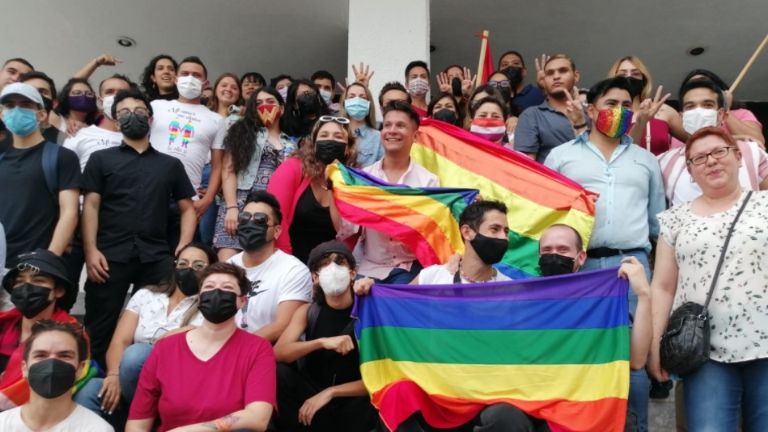 ¡Sí se pudo!, ¡sí se pudo!”, celebraron grupos de manifestantes pertenecientes a la comunidad LGBTQ+ por fuera del Congreso.