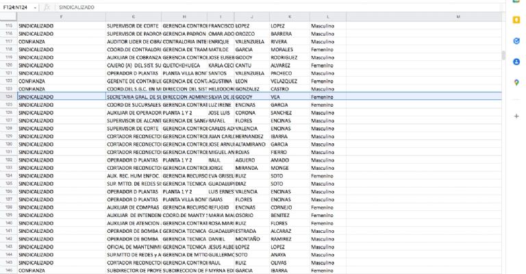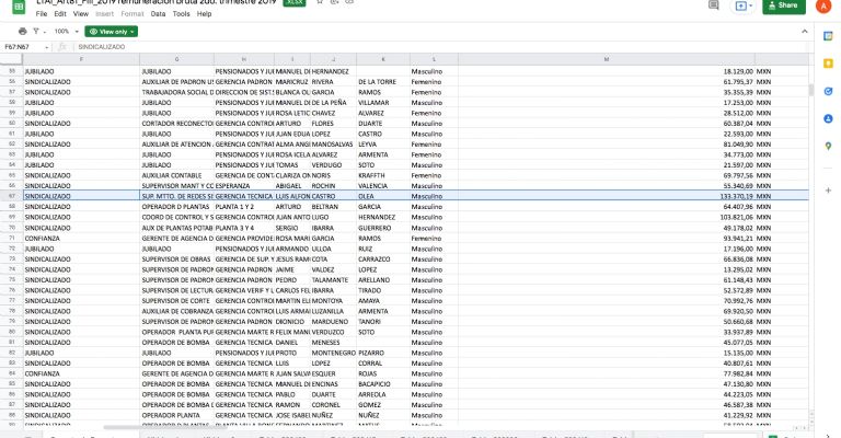 Sí uno observa con atención la nómina (para ver a detalle entrar a la página https://drive.google.com/drive/folders/1NXvciUM2dHXHQClz8iEFLavRdOSQjWSw) hay trabajadores en puestos relativamente “bajos” que ganan entre 50 a 60 mil pesos mensuales. Como por ejemplo en el segundo trimestre de 2020, la auxiliar de atención a usuario dependiente de la gerencia de contratos y servicios, Alma Angelica M. L. ganó 82 mil 748 pesos y 81 centavos; así como este ejemplo hay bastantes empleados.