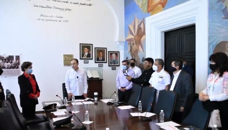 La Mesa Estatal de Seguridad, está presidida por el gobernador Alfonso Durazo Montaño y se integra por la secretaria de Seguridad, María Dolores del Río, el secretario de Gobierno, Álvaro Bracamonte, representantes del Ejército mexicano, la Guardia Nacional y la Marina Armada de México", cita el comunicado de aquel día.