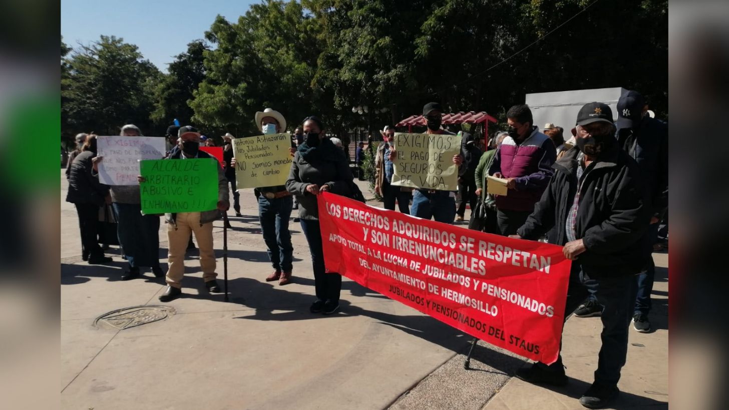 Hermosillo, Sonora.- Jubilados y pensionados del Ayuntamiento de Hermosillo marcharon la mañana del jueves hasta el Palacio Municipal para exigir un diálogo con las autoridades y se les restituyan algunos beneficios.