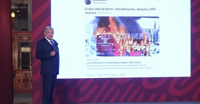 Ciudad de México.- En la conferencia de prensa matutina de este lunes 15 de agosto del 2022, efectuada desde el Salón de la Tesorería del Palacio Nacional, el presidente Andrés Manuel López Obrador (AMLO) habló sobre los hechos violentos que se documentaron en los estados de Chihuahua y Baja California el pasado fin de semana, los cuales hicieron que organismos empresariales de Sonora solicitaran que la ciudad de Hermosillo se blindara.
