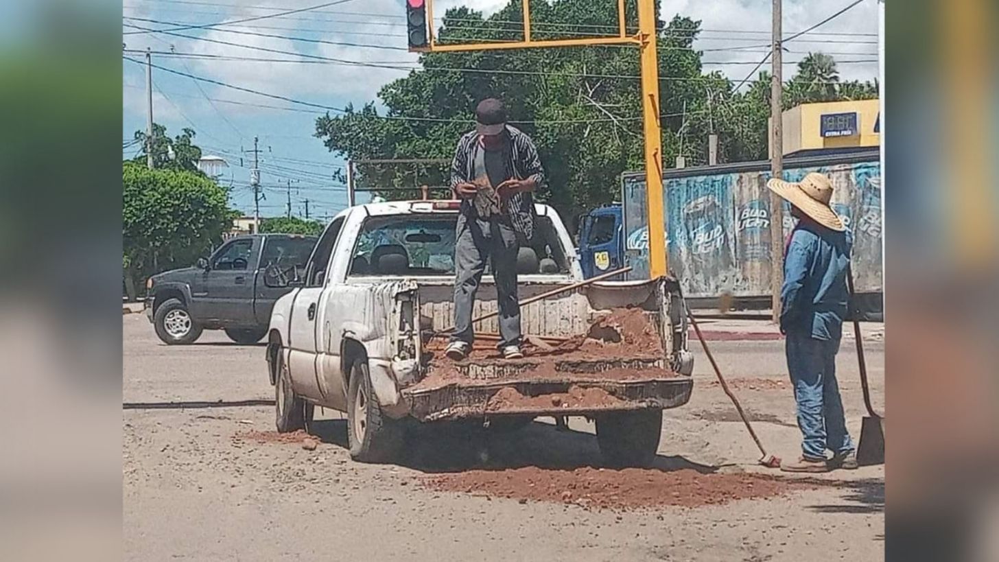Huatabampo, Sonora.- Autoridades municipales en Huatabampo anunciaron la reanudación del Programa Emergente de Bacheo en la cabecera municipal, sin embargo, a través de redes sociales, la ciudadanía denunció que en parte de dicho programa, se está realizando con tierra.