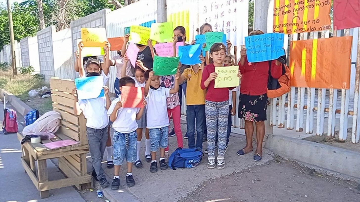 Aurora Cruz, madre de familia, señaló que las autoridades les indicaron que desde inicio de curso se habían comprometido a instalar las unidades de refrigeración, por lo cual, desde entonces, los menores solo acuden 3 horas al día.