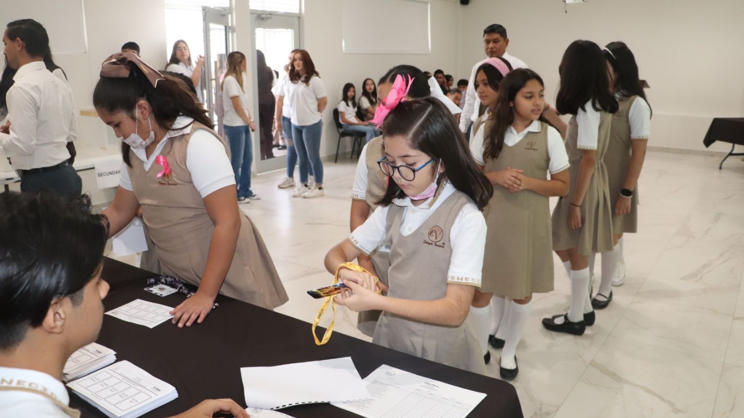 Ciudad Obregón, Sonora.- En las instalaciones del Colegio Venecia se realizó un gran ejercicio democrático, en el cual los estudiantes de primaria y secundaria eligieron a los próximos representantes de la Sociedad de Alumnos 2023-2024.