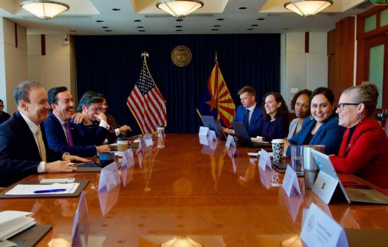 Phoenix, Arizona.- El gobernador de Sonora, Alfonso Durazo Montaño compartió los puntos que trató en su reunión con su homóloga de Arizona, Katie Hobbs, con quien acordó impulsar el desarrollo económico, turístico y social de la mega región de Sonora-Arizona, reafirmando así su compromiso de trabajar por la pronta reapertura del puerto fronterizo entre Sonoyta y Lukeville.