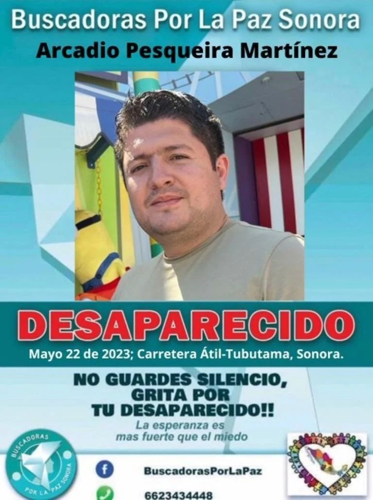 Altar, Sonora.- Fue el pasado 22 de mayo cuando el empresario ganadero Arcadio Pesqueira de 33 años de edad, tuvo contacto por última vez con su familia mientras circulaba sobre la carretera Átil-Tubutama ubicada en el municipio de Caborca en el estado de Sonora, razón por la se emitió un reporte de búsqueda y su familia ofreció una recompensa con tal de tenerlo de vuelta a casa y la Fiscalía ya emitió un reporte.