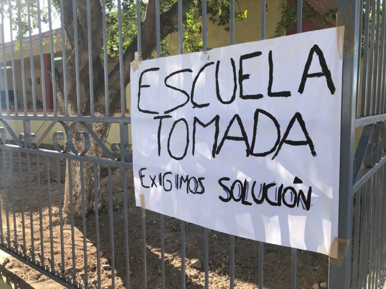 Navojoa, Sonora.- Los alumnos de la escuela primaria Club 20-30, ubicada en la colonia Constitución del municipio de Navojoa, Sonora, tienen sus clases suspendidas ya que de la Sociedad de Padres de Familia decidieron tomar las instalaciones para hacer una denuncia y esperan que intervenga la SEC, para que los pequeños puedan regresar a sus aulas.