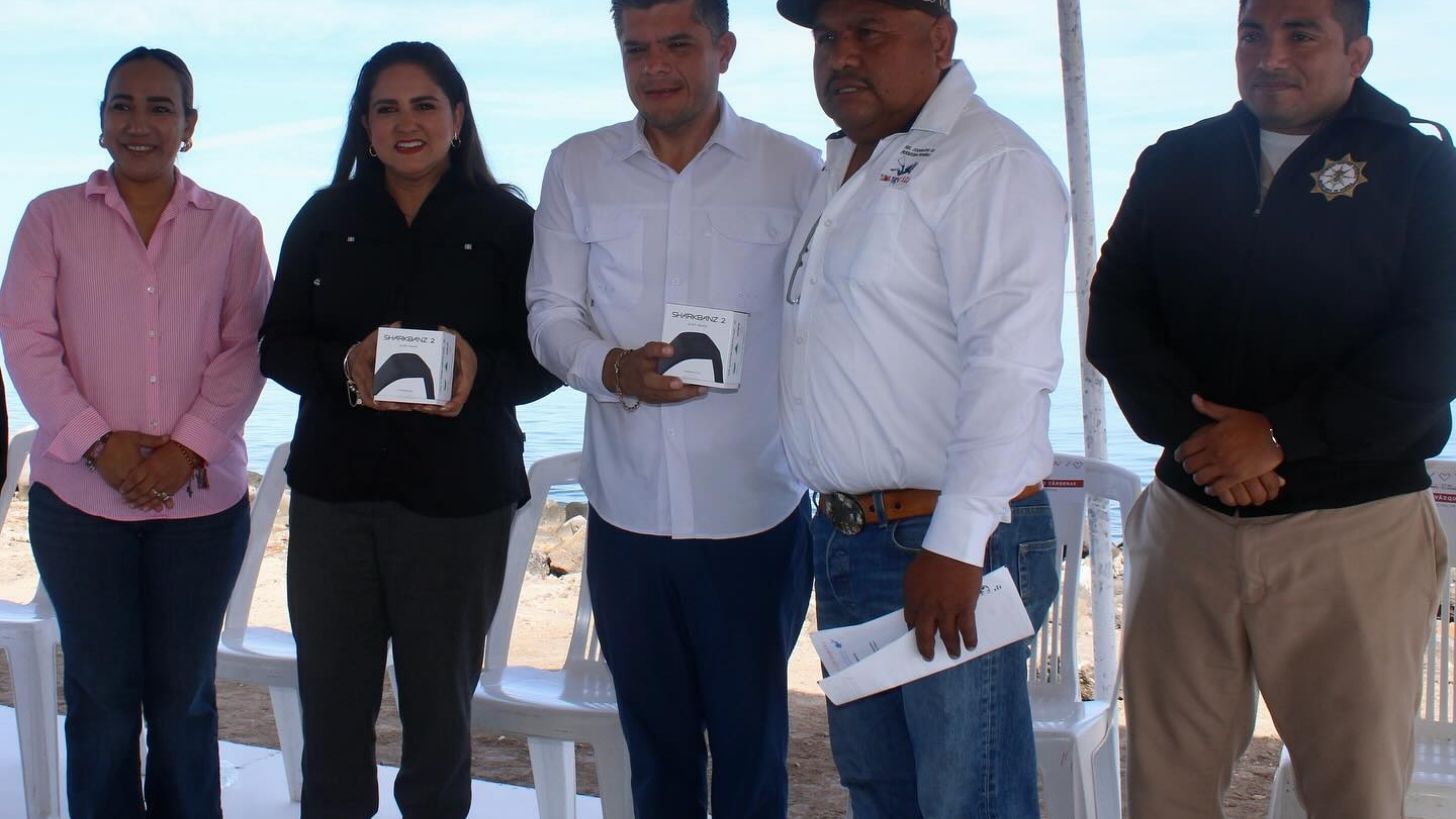La entrega de 35 brazaletes anti tiburones fue realizada por la Secretaría de Agricultura, Ganadería, Recursos Hidráulicos, Pesca y Acuacultura (Sagarpha), a cargo de su titular, Célida López Cárdenas, en el Puerto de Yavaros, del municipio de Huatabampo.