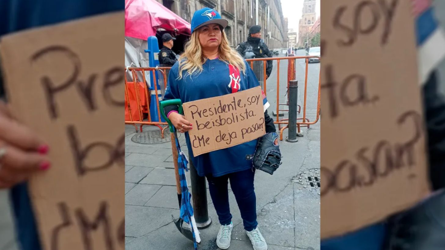 Ante esto, la buscadora se plantó afuera de uno de los accesos a Palacio Nacional con un cartel en el que se lee la leyenda “Presidente, soy beisbolista. ¿Me deja pasar?”. Ceci insiste en que AMLO, en sus casi seis años de poder, no se ha reunido con las Buscadoras, pero que sí ha hablado con talentos del beisbol.