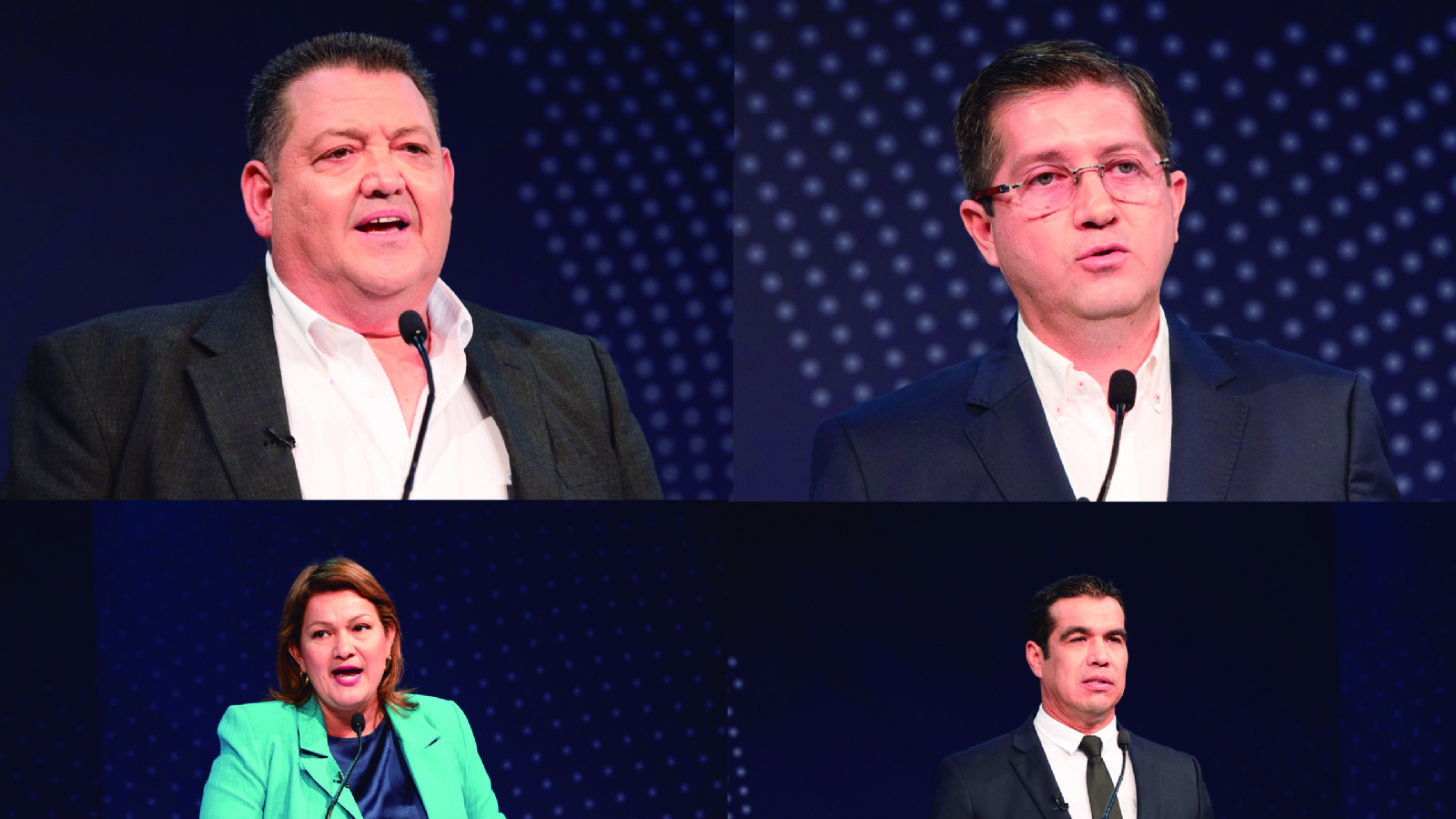 Hermosillo, Sonora.- Los candidatos a la alcaldía de Navojoa: Jorge Luis García de León Morales, de la coalición ‘Fuerza y Corazón por Sonora’ (PAN, PRI y PRD), Jesús Adolfo Domínguez López, de Movimiento Ciudadano, Jorge Alberto Elías Retes, abanderado de la candidatura común Morena, PT, PVEM, NAS, PES y la candidata del Partido Sonorense, Berenice Jiménez Hernández tuvieron un fuerte encuentro durante el debate municipal organizado por el Instituto Estatal Electoral y de Participación Ciudadana (IEE Sonora).