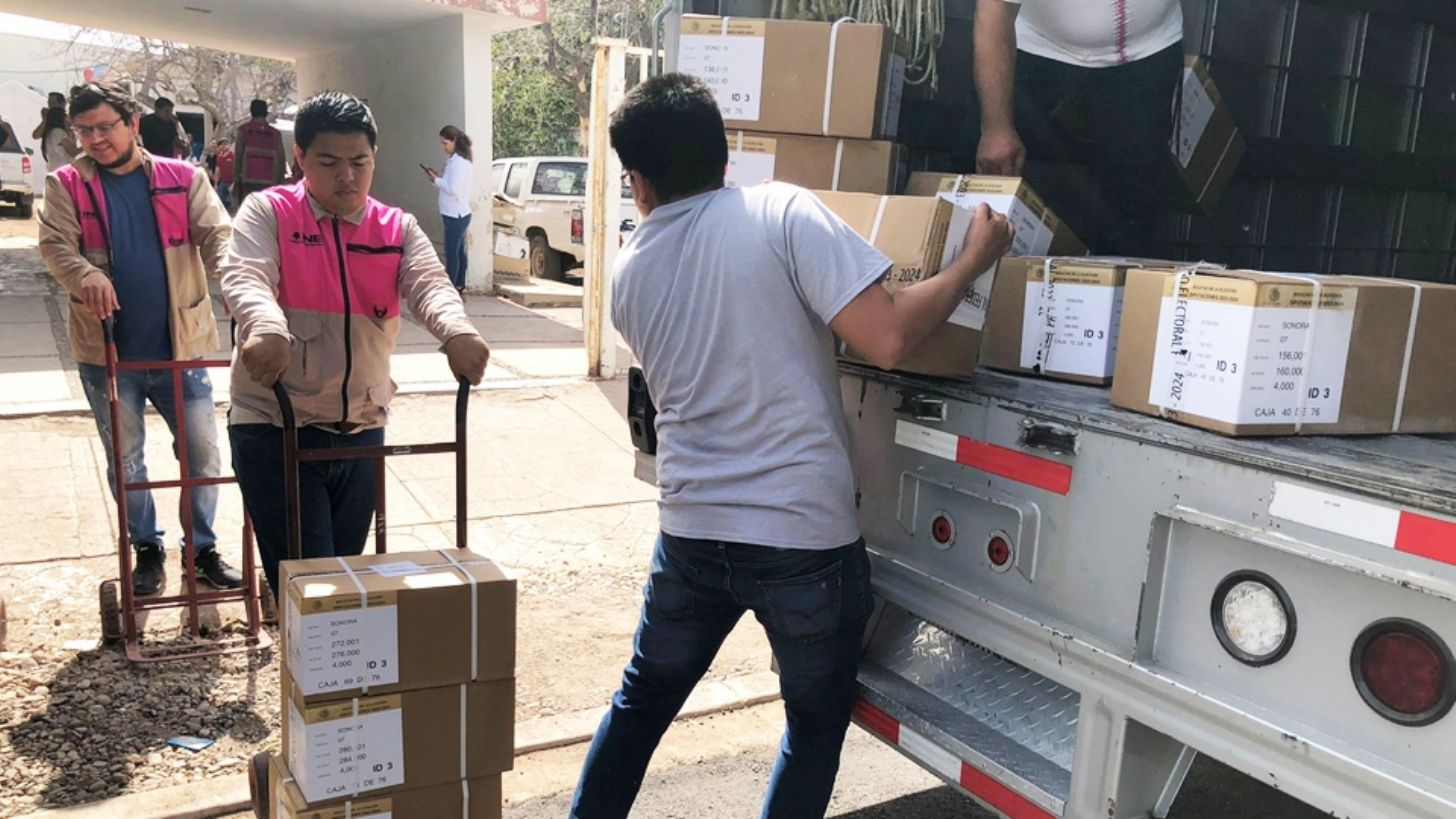 Este envío contiene las boletas electorales, las actas de la jornada electoral, las actas de escrutinio y cómputo que van a estar en las casillas, algunos carteles y demás documentación que ya cuenta con emblemas de partidos políticos", afirmó.