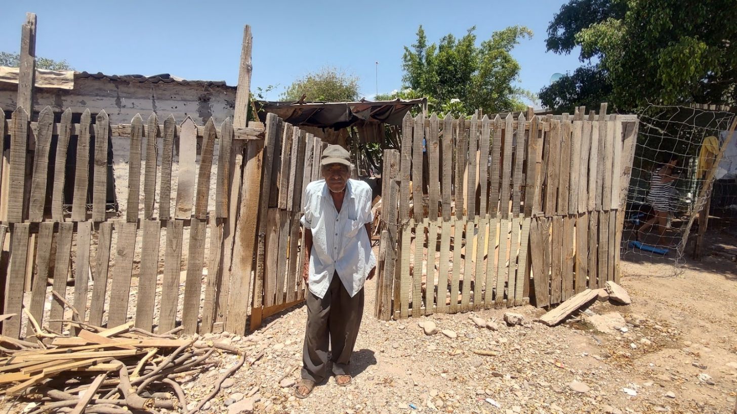 Juntando un poco de maíz molido para darle de comer a sus gallinas, don Chuy de 85 años de edad, compartió que, tras la muerte de su pareja sentimental, fueron sus nietos quienes lo llevaron a su actual domicilio, mismo que requiere de mucha atención, la cual por su edad le es difícil el poder darle mantenimiento.