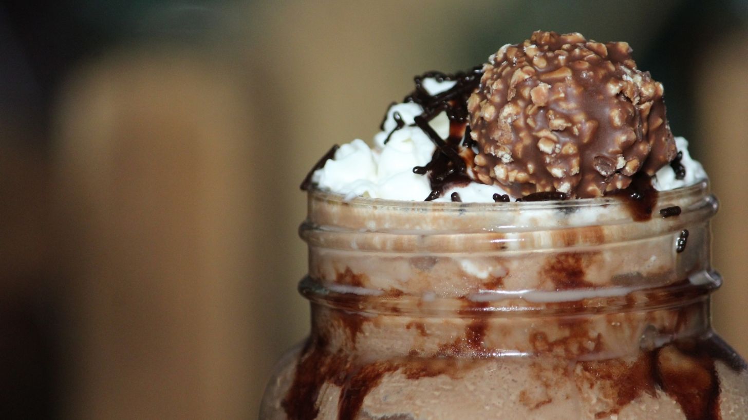 - Sirve en un vaso grande con la crema para batir y la galleta molida, espolvoreada
