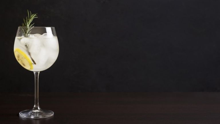 Necesitas: 30 ml de coñac, Agua Tónica, el jugo de un limón y hielo.