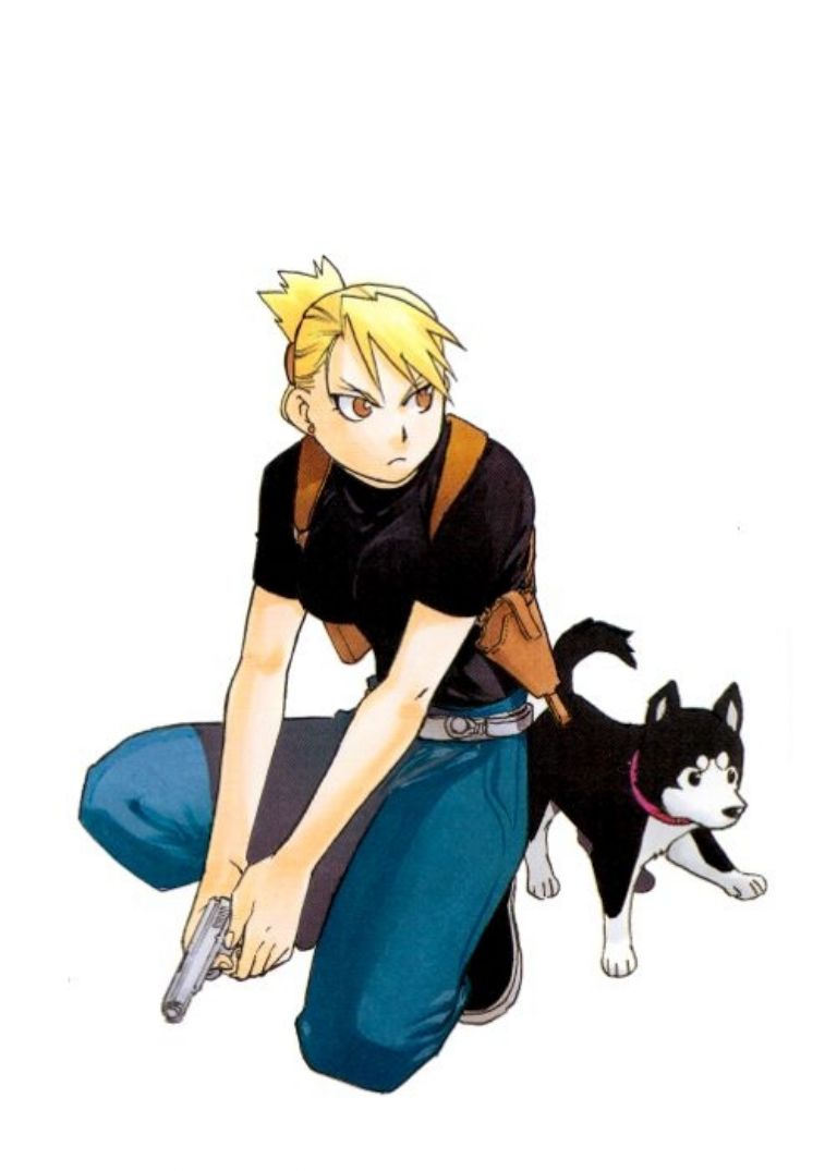 Es el adorable perro de la teniente 'Riza Hawkeye', originalmente había sido abandonado en la calle, pero fue encontrado por el sargento 'Kain Fuery', quien sintió pena por él y decidió llevarlo al cuartel, lamentablemente no podía cuidarlo, por lo que terminó siendo adoptado por la mano derecha de 'Roy Mustang'.