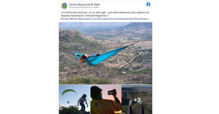 Para aquellos que deseen experimentar la sensación sin necesidad de dormir suspendido a varios metros de altura, existen la posibilidad de pasar dos horas apreciando el atardecer, para después volver a tierra firme. Además de la oportunidad literalmente de dormir bajo las estrellas, el Centro Vacacional El Salto ofrece experiencias para complementar la visita como vuelo en parapente, rappel, tirolesas, senderismo, bici de montaña y cuatrimoto.