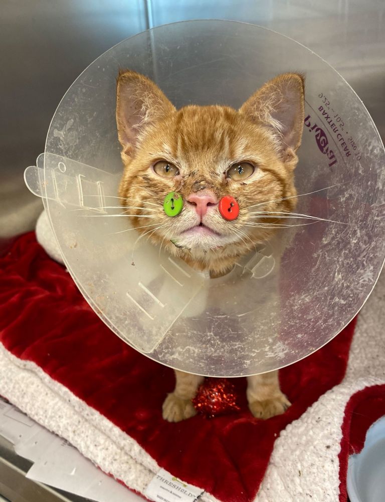 Massachusetts, Estados Unidos.- 'Juicebox' es un gato que fue masacrado y herido por el perro de sus dueños durante un descuido de los mismos. Fue trasladado de emergencia al Centro Médico Angel Animal de la Sociedad de Massachusetts para Prevenir la Crueldad hacia los Animales el 20 de enero del presente año.