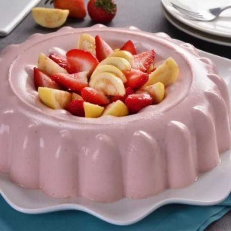 Como tip: Si quieres darle un toque más natural, puedes añadir unas guayabas y fresas picadas sobre la gelatina para luzca más apetecible.