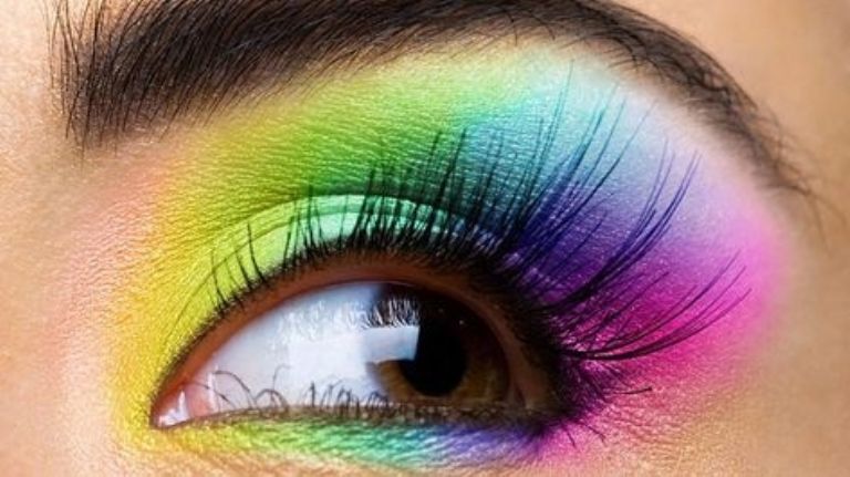 - Elije una paleta de maquillaje con los colores del arcoíris, de preferencia que sean tonos vibrantes.