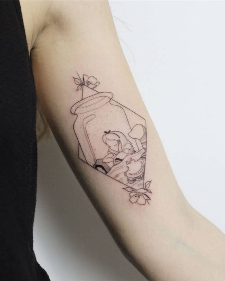 Este tatuaje está basado en la película de 1951 de Alicia en el país de las maravillas, como podrás ver es muy simple, pero bastante aesthetic.