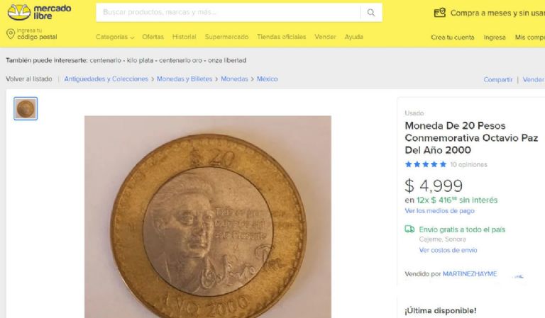 Si tienes una moneda de Octavio Paz, no la gastes y comienza a recibir ofertar por ella en numerosas plataformas digitales como Mercado Libre.