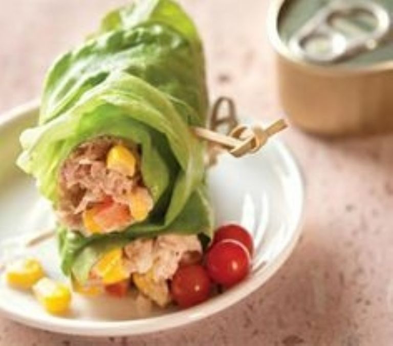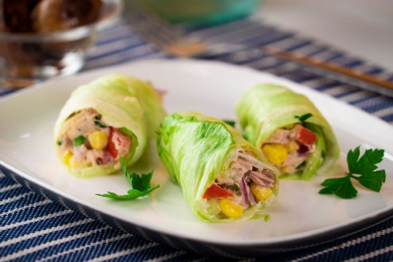 3. Extiende las hojas de lechuga, vierte un poco de la mezcla de atún, chile jalapeño al gusto y enrolla.