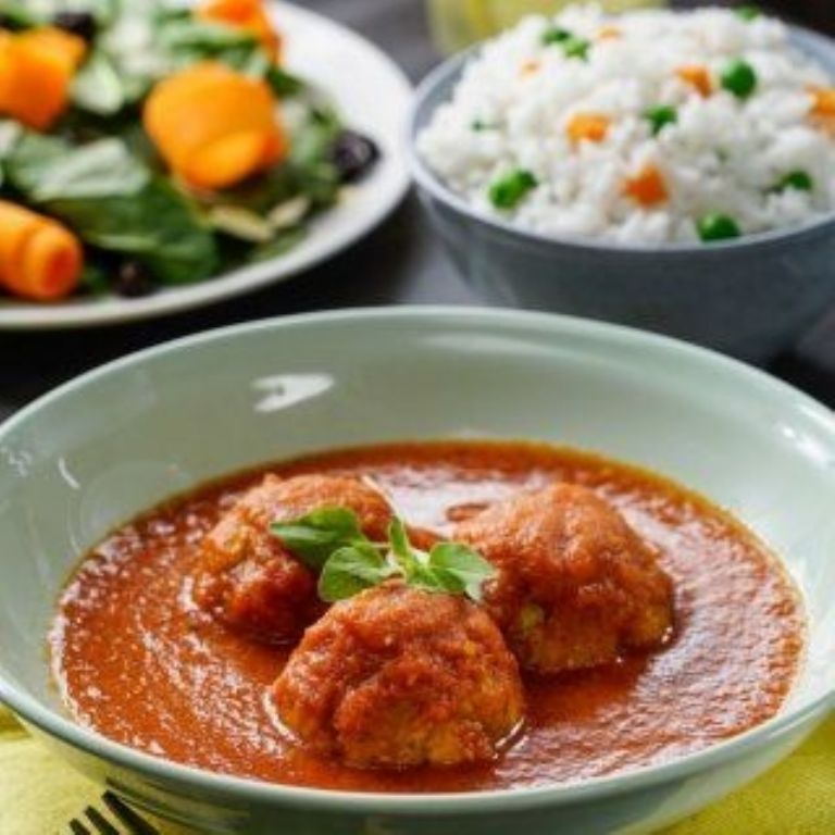- Pon a calentar un sartén a fuego medio, sella las albóndigas. Añade la salsa y permite que hierve por 15 minutos.