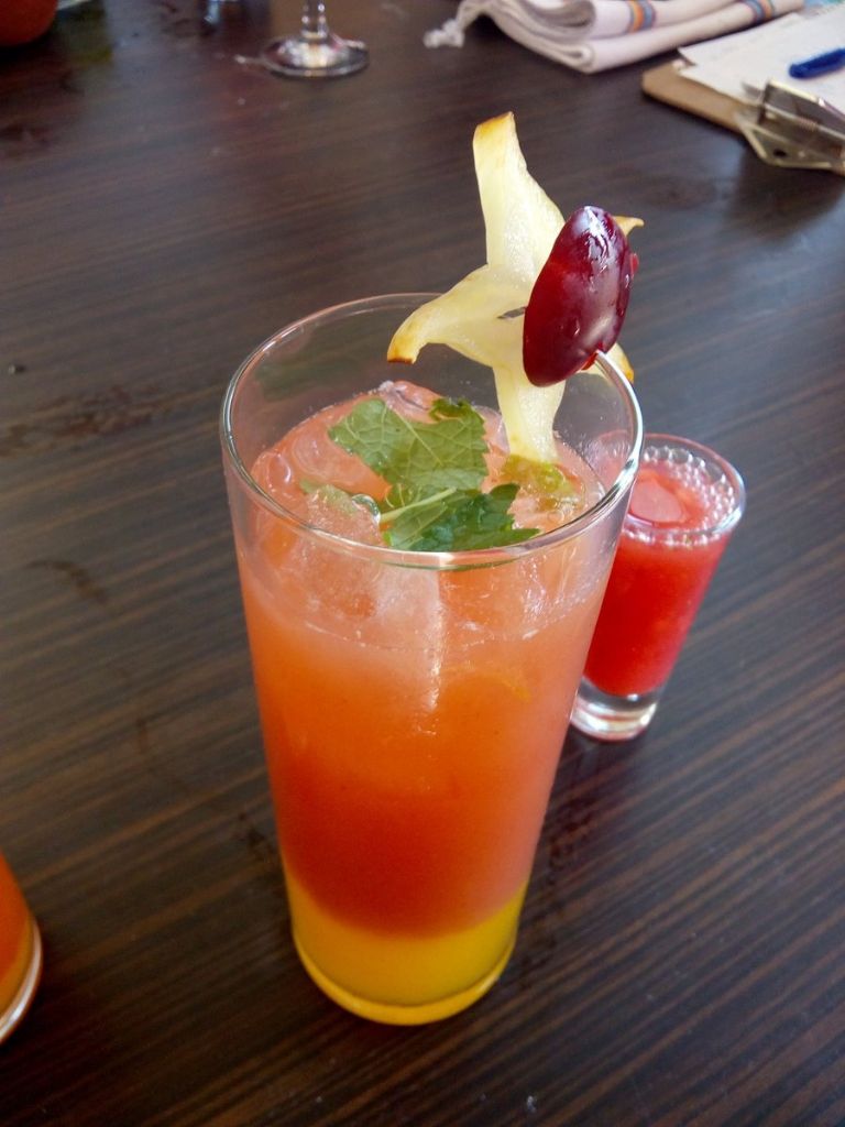 3. Sirve en el vaso escarchado y con ayuda de una cuchara vierte la granadina sobre el trago.