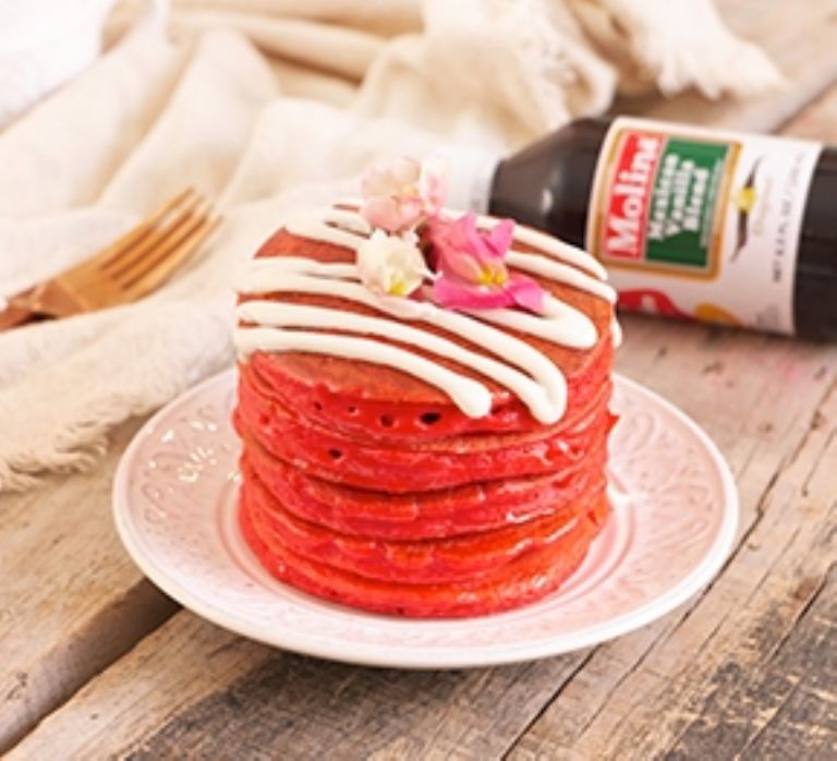 Ciudad de México.- Si eres de los afortunados o afortunadas que viven con su pareja este 14 de febrero será perfecto para celebrar el amor que hay entre ustedes y que mejor que sorprenderle con un rico desayuno como estos hot cakes de red velvet.