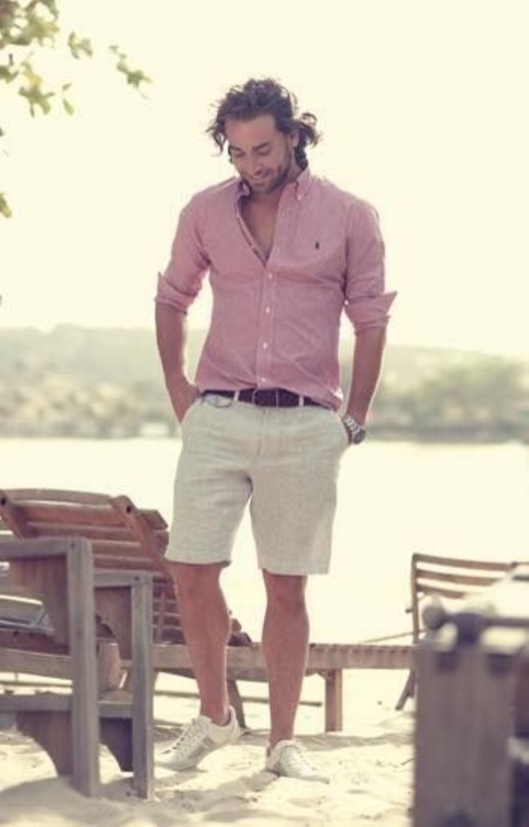 En temporada de calor una camisa rosa pastel combinada con una bermuda puede ser un respiro agradable para muchos hombres, la razón es que este tono es muy suave, por lo que no atraerá el calor como lo haría el azul oscuro, marrón o negro y la bermuda le dará frescura a tus piernas, algo de lo que disfrutarás gratamente.