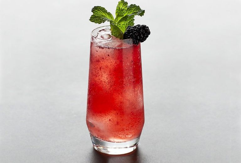 1. Agrega las zarzamoras y la menta en una licuadora y muele.