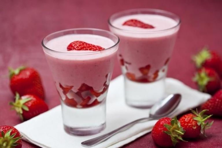 2. Licua la gelatina con las fresas y la leche en polvo hasta que obtengas una consistencia cremosa.