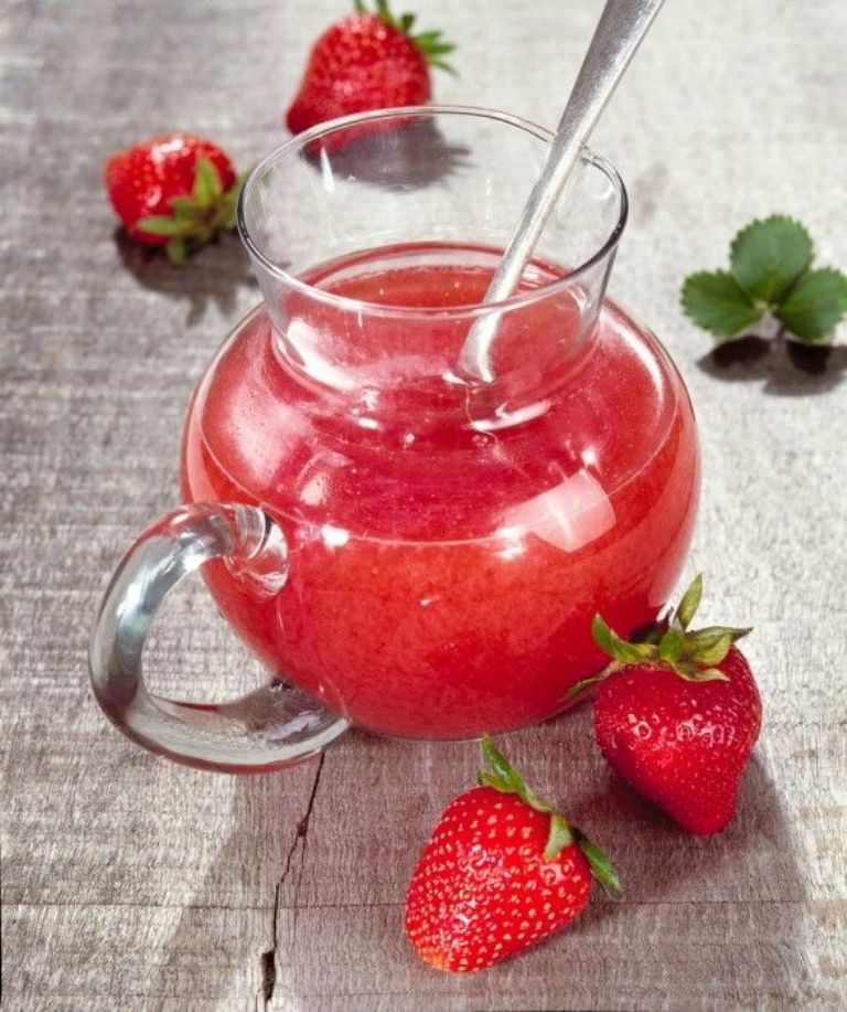 2. Cuela la mezcla para separar el líquido de las fresas enteras.