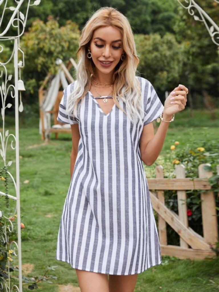 - Vestido túnico con abertura de rayas
