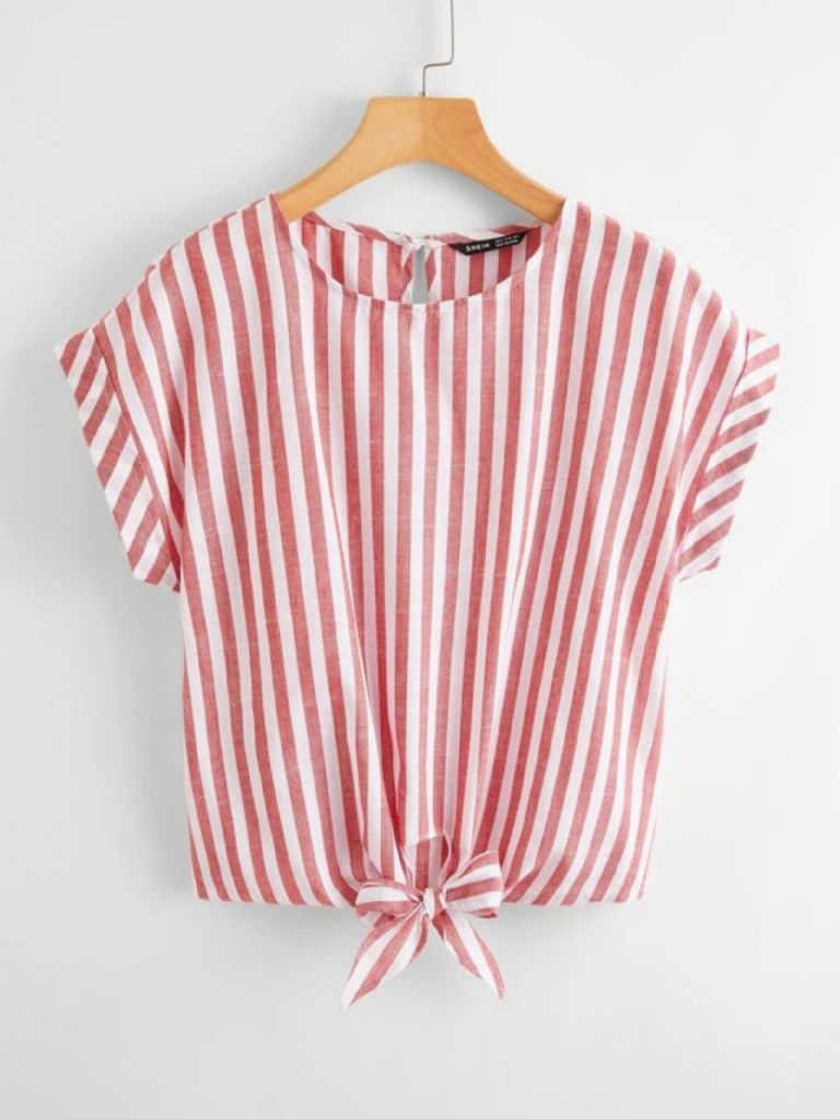 - Top de rayas bajo con nudo de manga doblada