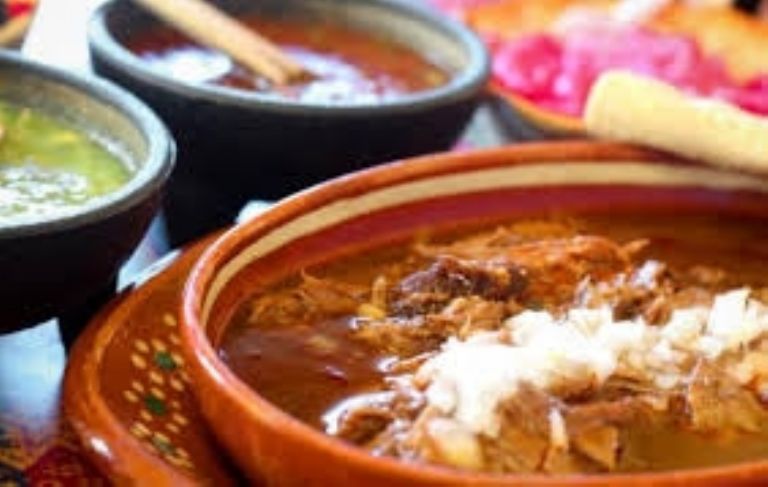 Hecho a base de un caldo de carne de cerdo, puede ser verde, rojo o verde, con granos de maíz, acompañado de lechuga, cebolla, rábanos, orégano y chile piquín, es reconocido por ser uno de los más picosos de México.