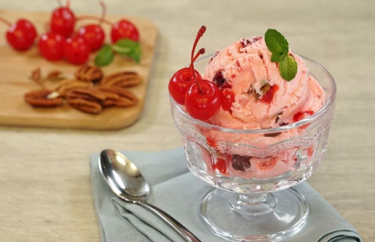 3. Vierte el contenido en un recipiente, añade el resto de las cerezas, la nuez y revuelve un poco.
